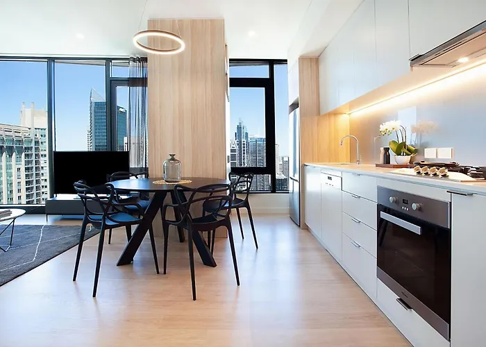 L'appartement City High - Hosted By: L'Abode Accommodation est situé au centre de Cité de Sydney, à seulement 5 minutes de marche de Sydney Tower Eye SKYWALK. Il est situé à seulement 5 minutes de marche de la gare St James et l'arrêt de bus à quelques minutes de la gare Stand C Hyde Park.